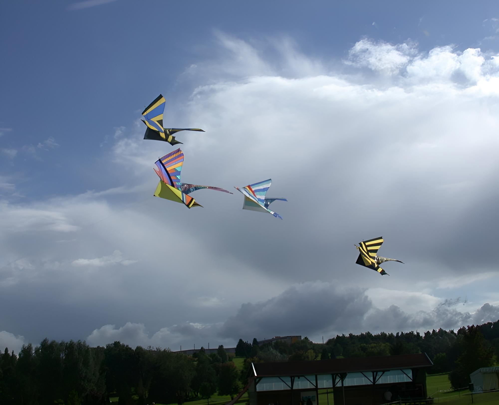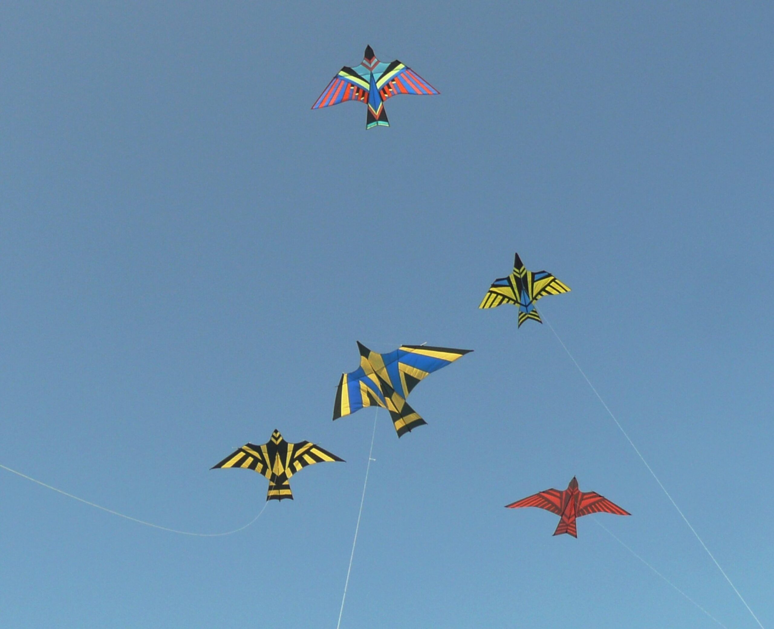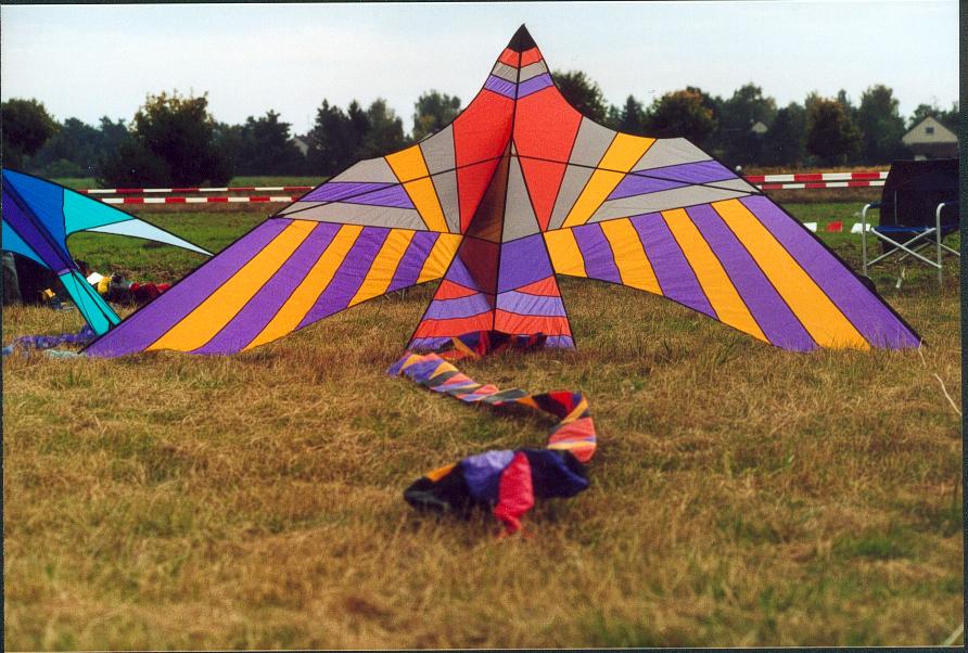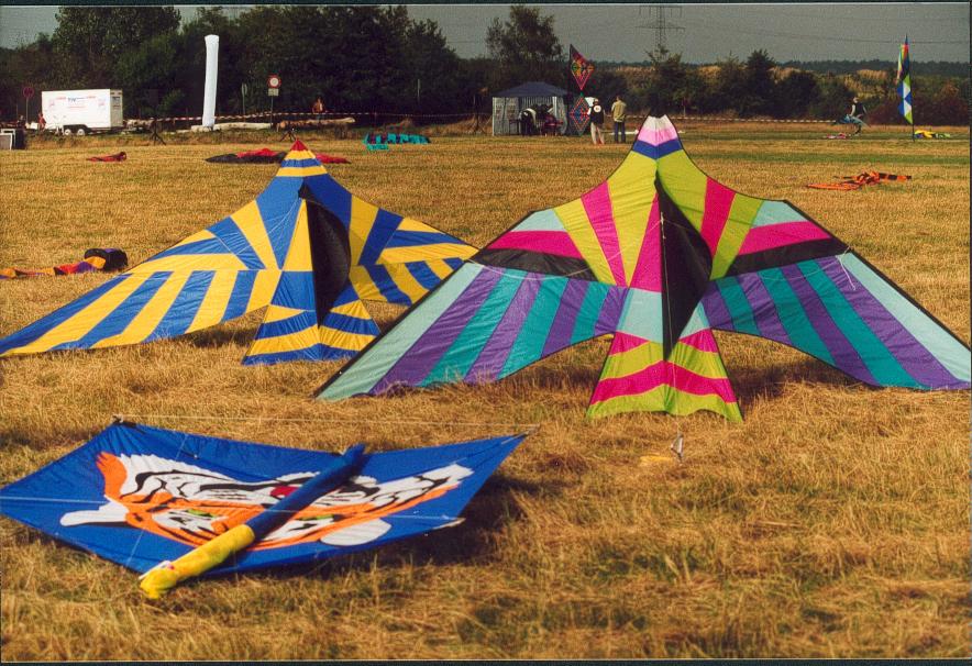 Auf dem Drachenfest in Rodgau 2001 fielen uns zwei Peters-Vögel auf, die uns gut gefielen, wir fragten die Besitzer nach den Bauunterlagen.